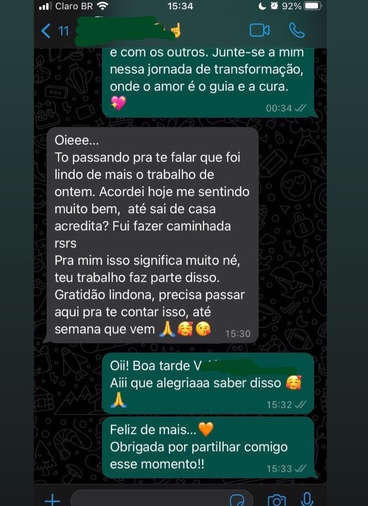 As pessoas que chegam até mim tem evoluções que nunca tiveram em anos de terapia